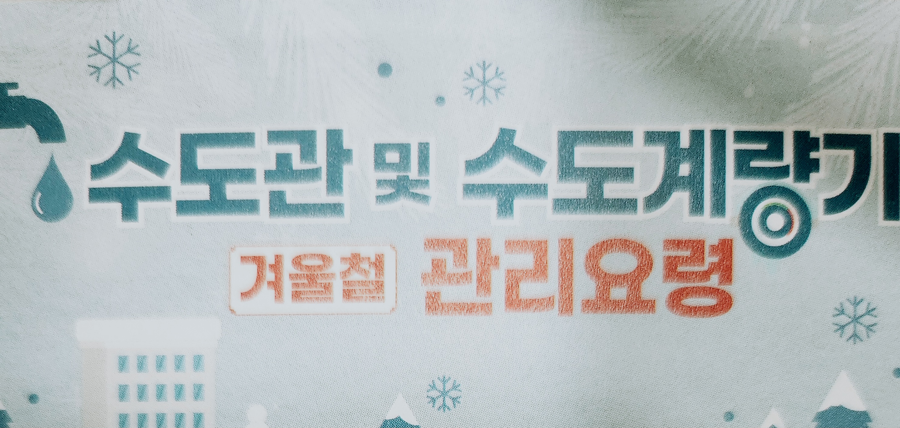 1. 혹한기에는 수도꼭지를 조금 열어 수돗물을 흐르게 하고 받아서 사용하면 대부분의 수도시설물 동결(동파)를 예방할 수 있습니다.