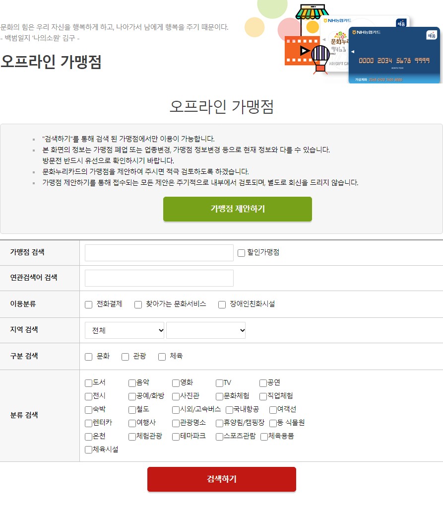 문화누리카드는 기획재정부 복권위원회의 복권기금을 받아 추진하고 있는 공익사업입니다. 알림방
