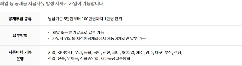- 폐업 등 공제금 지급사유 발생 시까지 가입