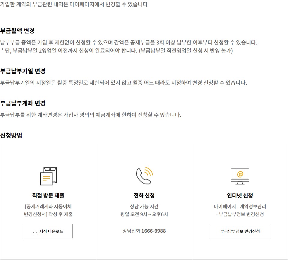 - 또한 부금을 12개월 이상 연체한 경우에는 계약이 강제종료 될 수 있습니다.