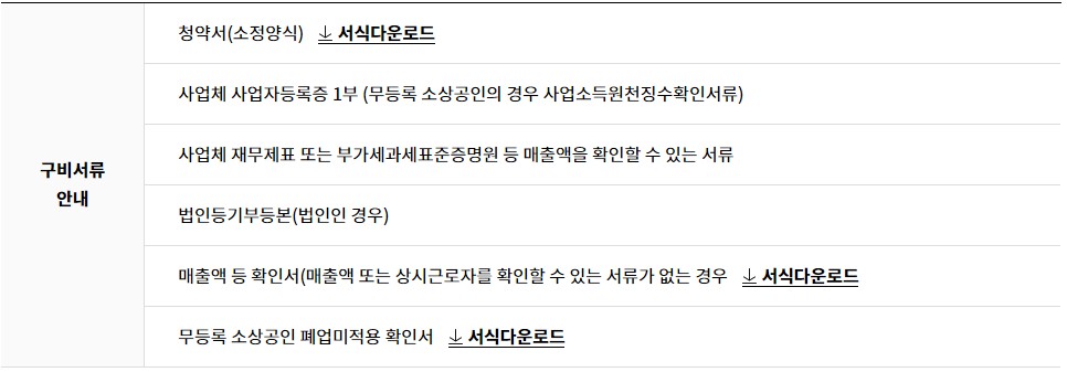 - 법인등기부등본(사업체가 법인인 경우에 한함)