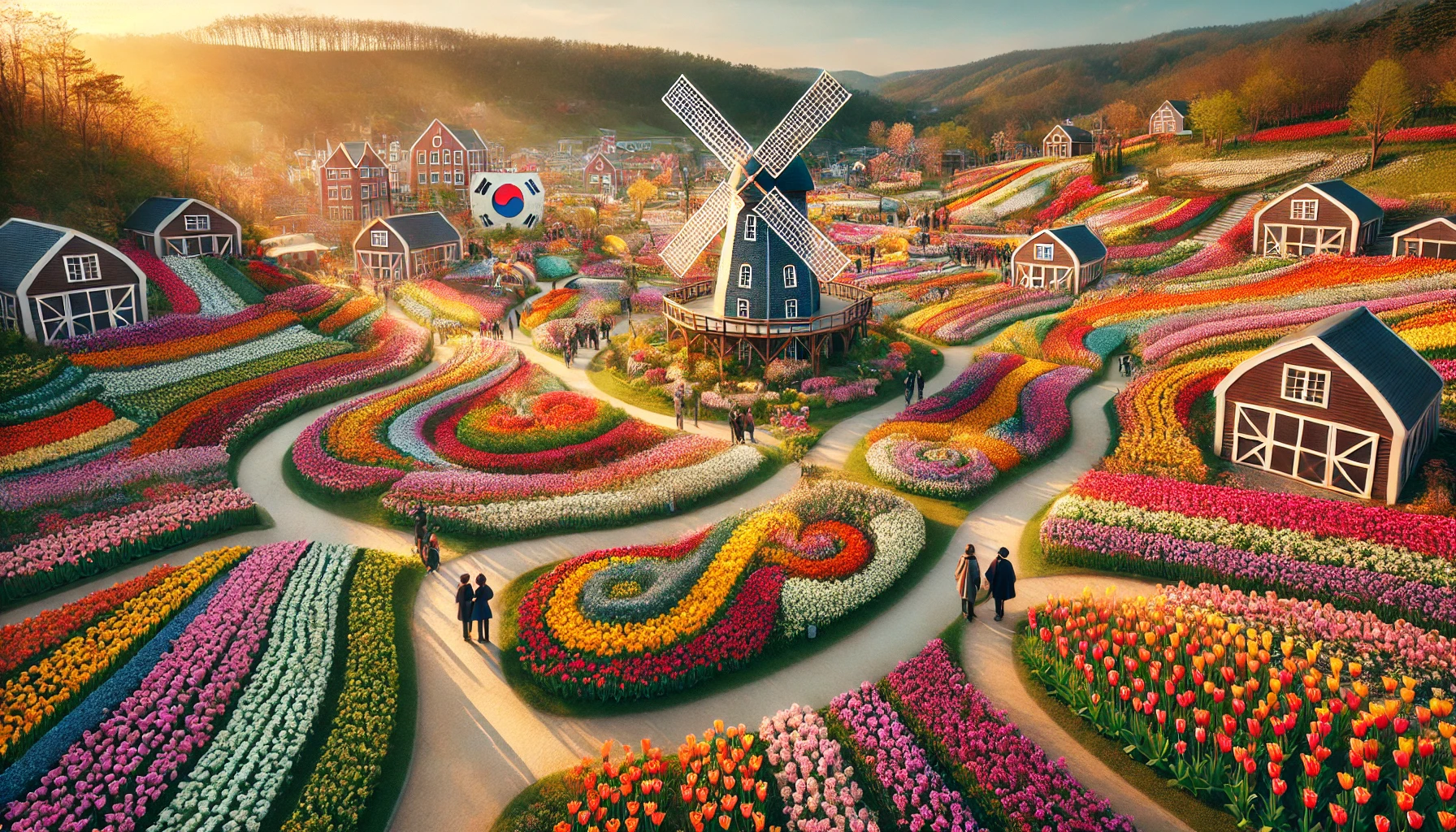 - 튤립 테마 정원 – 화려한 색감의 다양한 튤립이 펼쳐진 장관