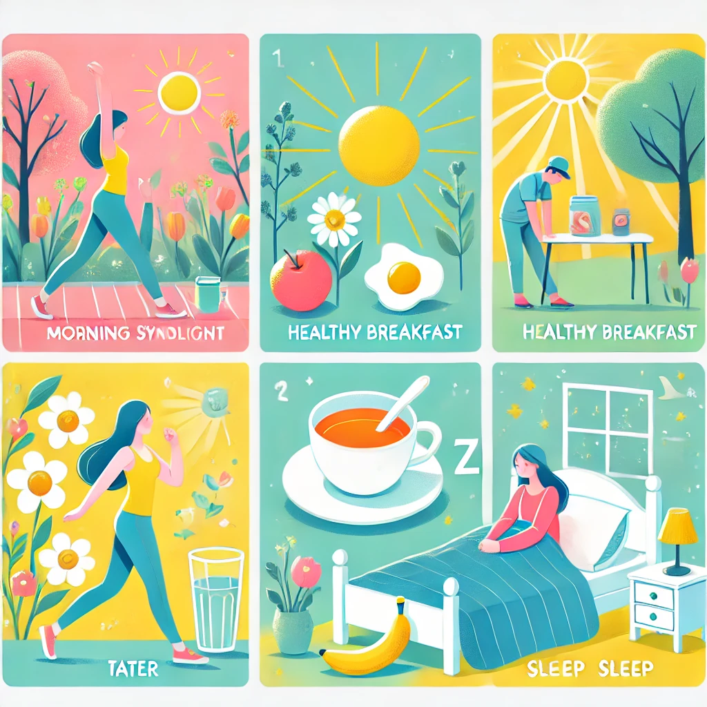 - 아침에 가벼운 스트레칭으로 몸을 깨우기