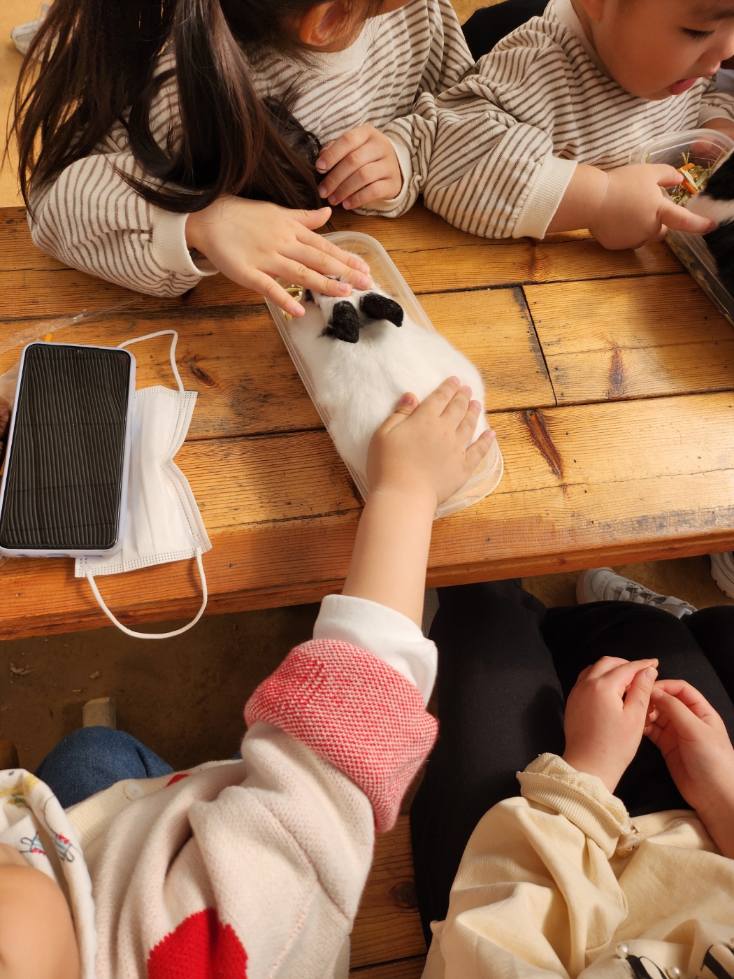 어디선가 아이들이 작은 토끼를 테이블에 가져와서 먹이도 주면서 안아주기도 합니다.