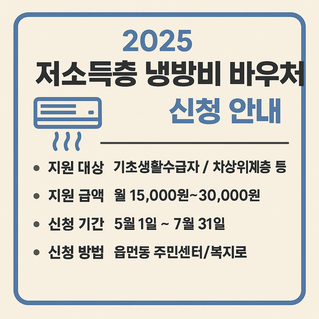 2025 저소득층 냉방비 바우처 신청 안내 - 전기요금 걱정 없는 여름 만들기